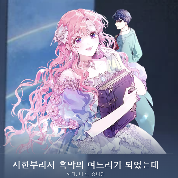 요즘 저의 최애 웹툰! 웹소설 원작이고 요즘 시한부라는 소재, 빙의가 흔한 소재이긴 하지만 작화가 예쁘고 인물 하나하나 어떻게 예쁠수가 있는지! 핑크머리 여주인공 '라리아' 와 남주 '에반 '이 꼬마부부가 귀여워요.! 웃긴 부분도 많고 읭? 스러운 부분없이 스토리도 좋습니다!